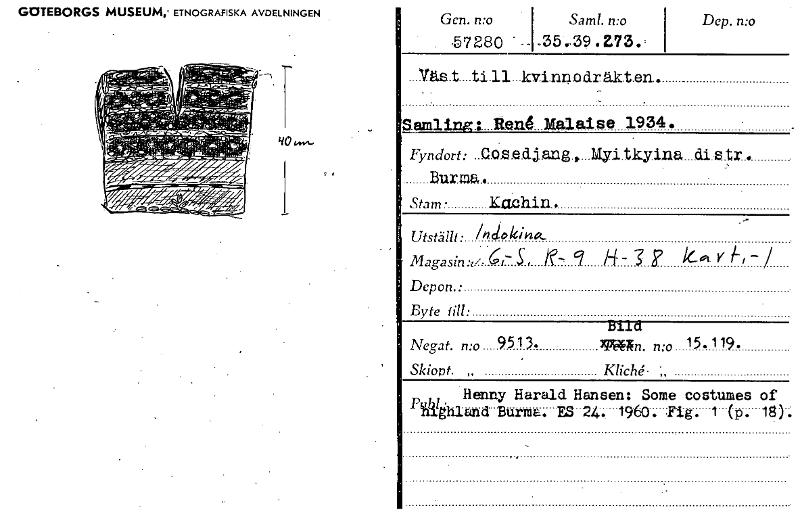 GOTEBORGS MUSEUM,' ETNOGRAFISKA AVDELNINGEN Saml. n:o •7280 -135..39.2.73 Gen. n:o Dep. n:o Atäst_till_kvinnodräkten, Saralingi_Renk_Molaise 1934. Fyndort:_Casedjeng, Myitkyina_distr. Burma Stam Kaehi...