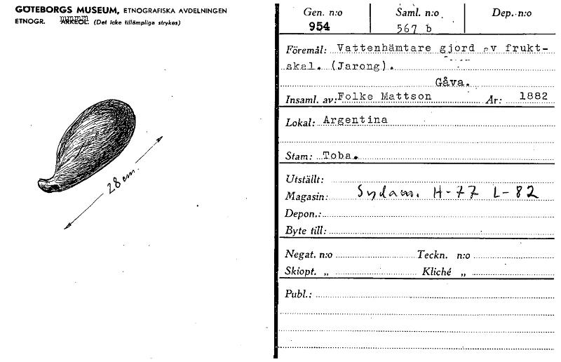 • GOTEBORGS MUSEUM, ETNOGRAFISKA AVDELNINGEN ETNOGR. 3~. (Det icke tillämpliga strykas) Gen. n:o 954 SaMl. n:o 567 b Dep. n:o Föremål: Vat tenhämt are gjord p v frukt - Jar033-g » Gåva . Insaml. av:F... Visa hela