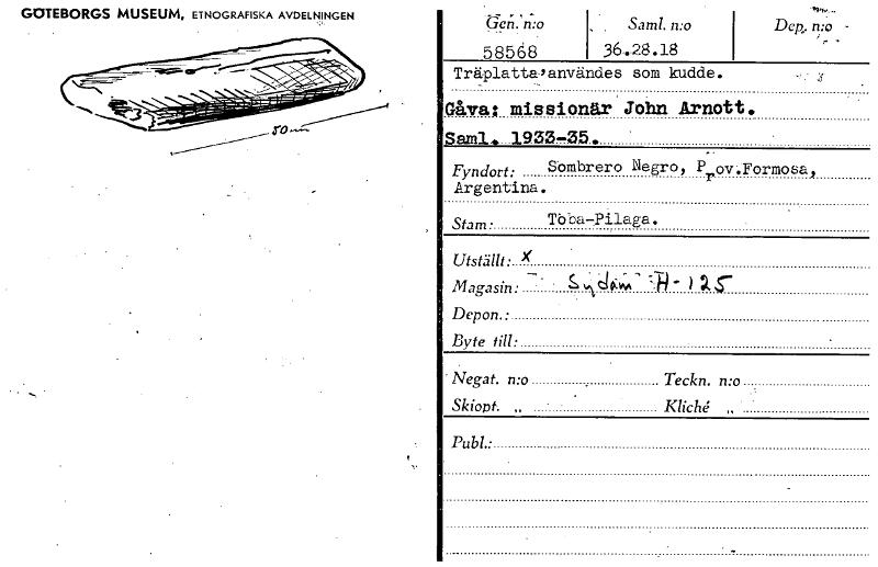 • GOTEBORGS MUSEUM, ETNOGRAFISKA AVDELNINGEN Gen. n:o Saml. n:o 58568 36.28.18 Träplatta 9 användes som kudde. Dep,. n:o - Gåva; missionär John Arnott Sara. 1.933-35. Fyndort: Sombrero Negro, P ov.Form... Visa hela