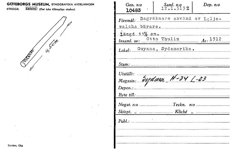 • GOTEBORGS MUSEUM, ETNOGRAFISKA AVDELNINGEN ETNOGR. WliTäST: (Det Icke tillämpliga strykas) Elanders, Gbg Gen. n:o 10483 - Saml. n:o 12 .1 . 515 Z Dep. n:o . Föremål: Dagräknare använd av Lilje- walch... Visa hela
