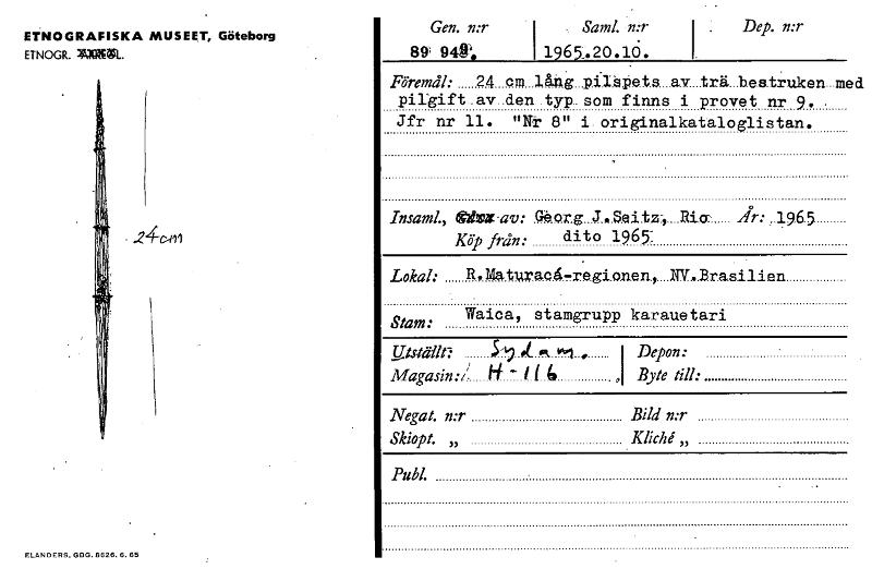 Gen. n:r 89 9491;. Föremål: 24 pirgift av. Jfr nr 11. i• Saml. n:r . Dep. n:r I 1965.20.10. .p.ilspet.s. av trä...b.e.s.truken...med .den typ. som finns i provet nr 9. "Ni- 8" i. originalkataloglistan. ETNOGRAFISKA MUSEET, Göteborg ETNOGR. 24-mi Insaml„ ~172r av: GSorg Seitz, Rio- År: 1965 Köp från: dito 1965; Lokal: R.Maturacgi-regi ollen DN. Brasilien Stam: Waica, stamgrupp karauetari Utställt: Magasin:i Depon: - 11 Byte till: Negat. n:r Bild n:r Skiopt. „ Kliché,, Publ. ELANDERS. GBG. 6626. 6. 65 [ocr]Stäng