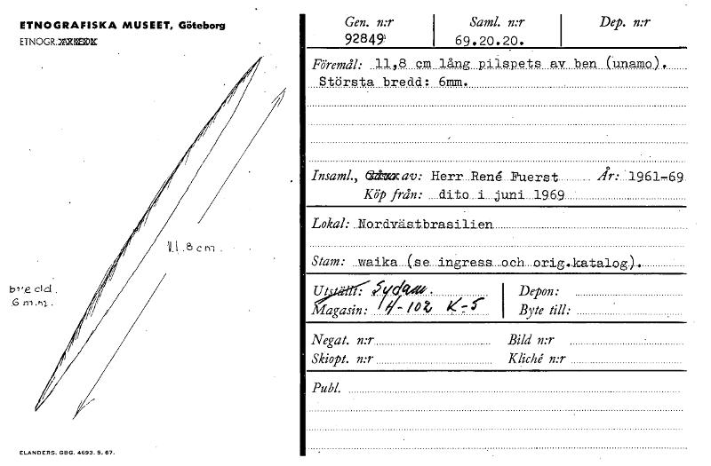 • Katalogkort ur Världskulturmuseets arkiv.