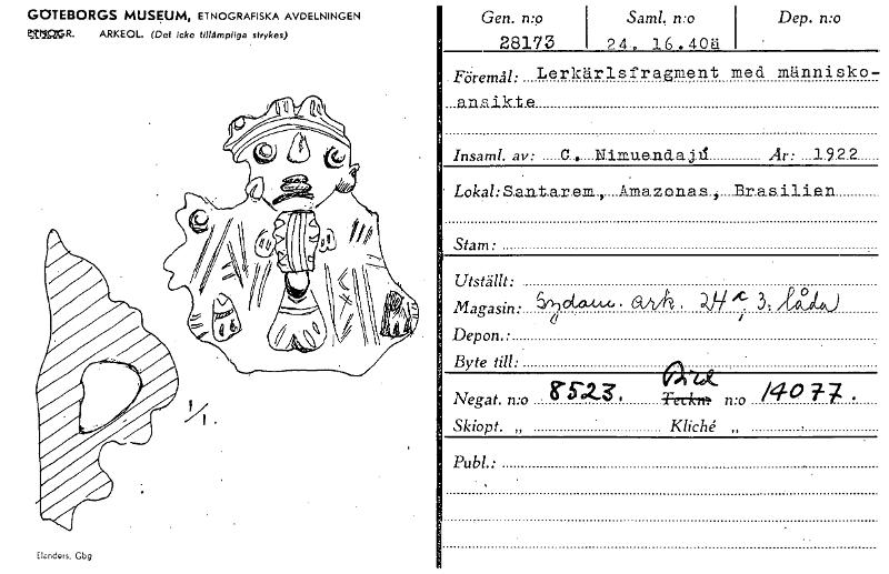 GOTEBORGS MUSEUM, ETNOGRAFISKA AVDELNINGEN 2AIX2GR. ARKEOL. (Det icke tillämpliga strykes) Elandels, Gbg Gen. n:o 28173 Saml, n:o 2 4 . 16 . 4 0 ä Dep. n:o Föremål: ...a.maikte Insaml. av: Lerkärlsfragment med människo- C ... .N.i.mue.nd..a Di Är: 1.9.2.2 • Lokal: S.an.t.a.rem..,....Amazonas.,....B.ra_silien Stam: Utställt: Magasin: Depon.: Byte till: • allA , Dji 'C 3, /VA) 0 Negat. n:o Skiopt. „ 8"3-12-3., OU_ Teck,6. n:o /4° 77 • Kliché „ Publ.: [ocr]