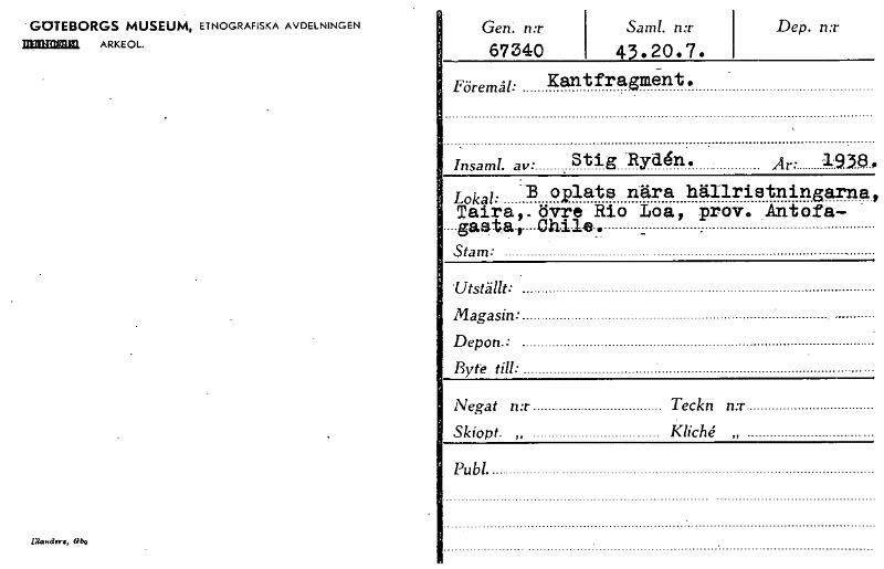 • Katalogkort ur Världskulturmuseets arkiv.