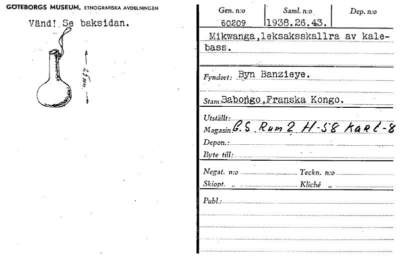 • GOTEBORGS MUSEUM, ETNOGRAFISKA AVDELNINGEN Vänd! Se baksidan. Mikwangalleksaksskallra av kale- bass. Fyndort: Byn Banzieye. stam.Baboi5go ,Franska Kongo. Utställt: Magasin 9 /?/./».7 2 Ss /ra 47 -k ... Visa hela