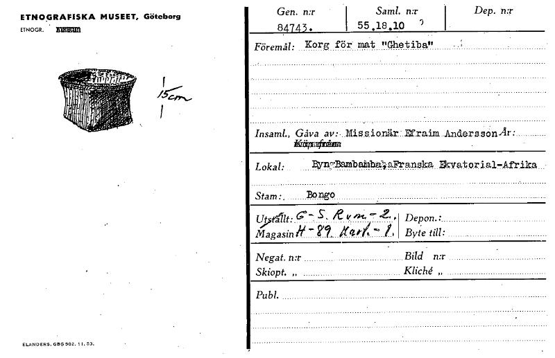 • ETNOGRAFISKA MUSEET, Göteborg ETNOGR. Erna Gen. n:r 8,4743. I Saml. n:r 55.18.10 g Dep. n:r Föremål: Korg för- mat TiChetiba" . . Insaml., Gåva av[..Mis.s.io.när:.Efraina..AnderasånÅr: Ikterånfinten ... Visa hela