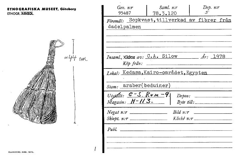 ETNOGRAFISKA MUSEET, Göteborg ETNOG R. Wrgta. ELANDERS.W313.1972. Gen. n:r 95487 I 7 8 8.7.112710:r I Dep. n:r 3-- Före m å I • Sopkvast,tillverkad av fibrer från dadelpalmen Insaml.,302u£ av: C • Å• ...