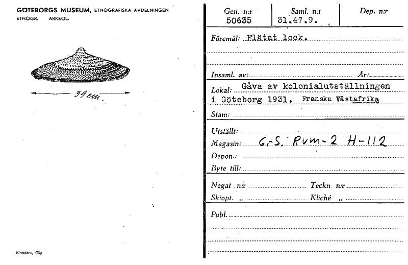 GOTEBORGS MUSEUM, ETNOGRAFISKA AVDELNINGEN ETNOGR. ARKEOL. 11••• Elanders,Gbg Gen. n:r 50635 .Saml. n:r 31,47,9. _ , Dep. n:r Föremåi: „FlAtat—l!Dok- Insaml. av: Ar• Lokal: Gåva av kolonialutställningen i Göteborg 1931. Franska Västafrika Stam: . Utställt: Magasin: Cr:75. P 1 / fril • i 2 Depon : Byte till: Negat n:i- Teckn. n:r , Skiopt. „ KlicU „ Publ.. [ocr]