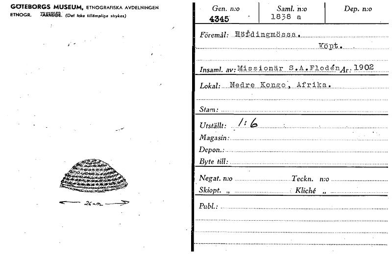 • Dep. n:o GOTEBORGS MUSEUM, ETNOGRAFISKA AVDELNINGEN ETNOGR. 4.4.~. (Det Icke tillämpliga strykes) Gen. n:o 4345 Saml. 1838 a Föremål: .10clingmö s s a e Köpt Insaml. av:Missionär S.A.FlodenAr: 1902 Lo... Visa hela