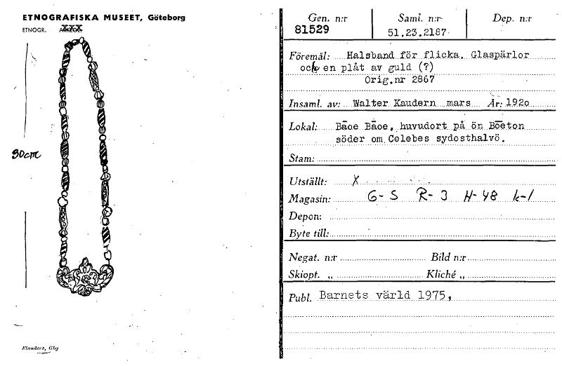• Katalogkort ur Världskulturmuseets arkiv.