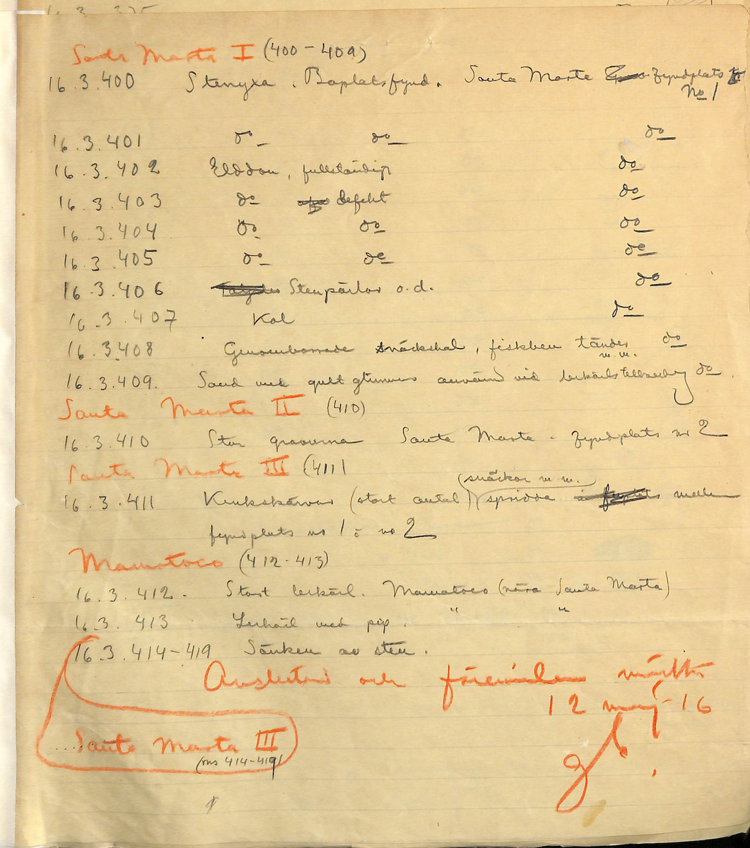 • Förteckning, katalog, handskriven, samling 1916.03.