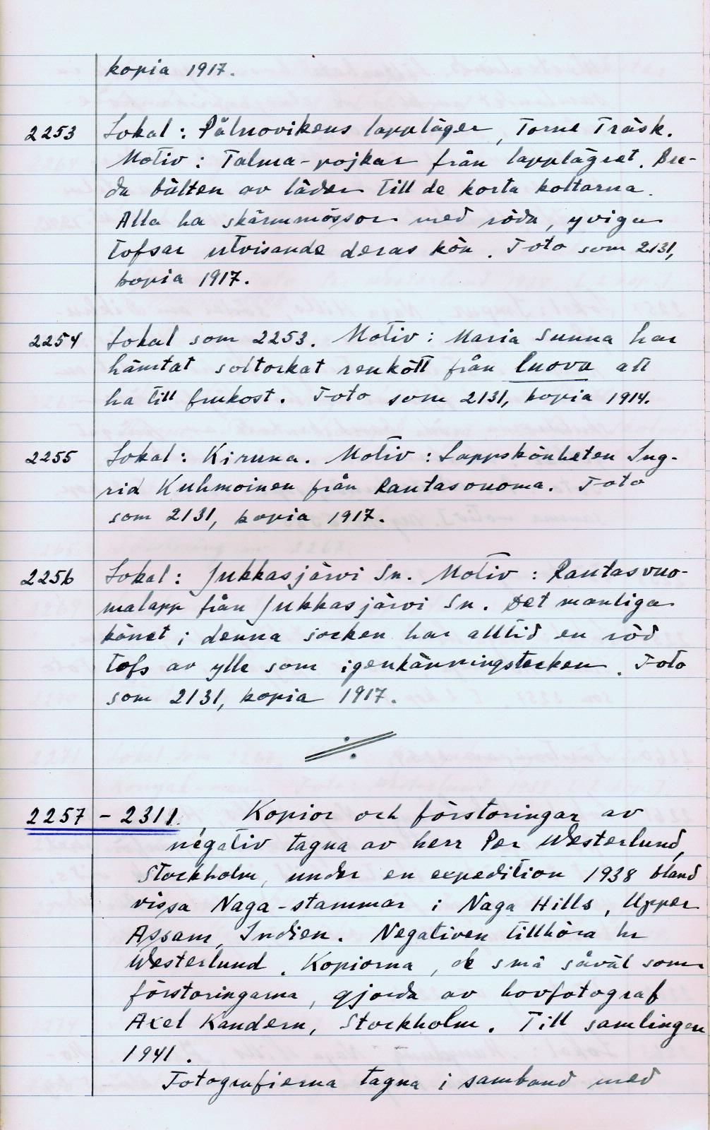 • Boksida ur Bildarkivet, bok 2. Handskriven dokumentation av bilder.