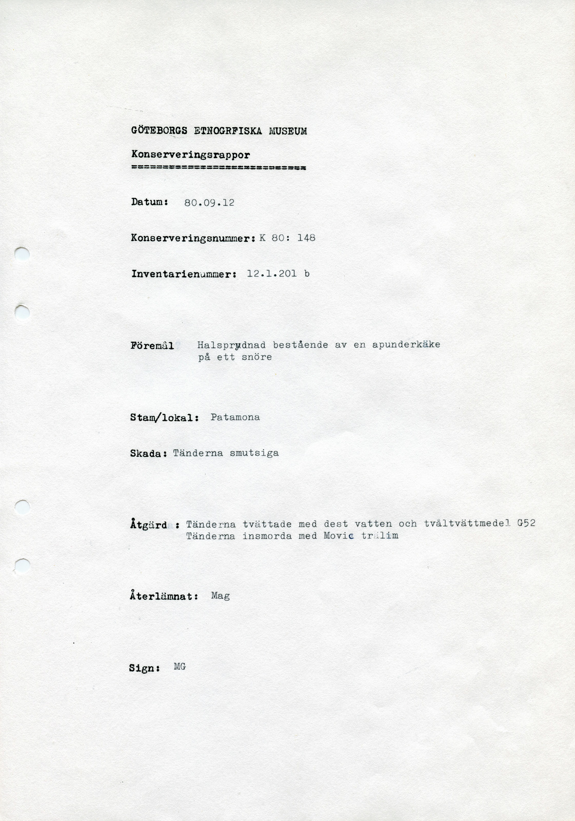 konserveringsrapport, rapport