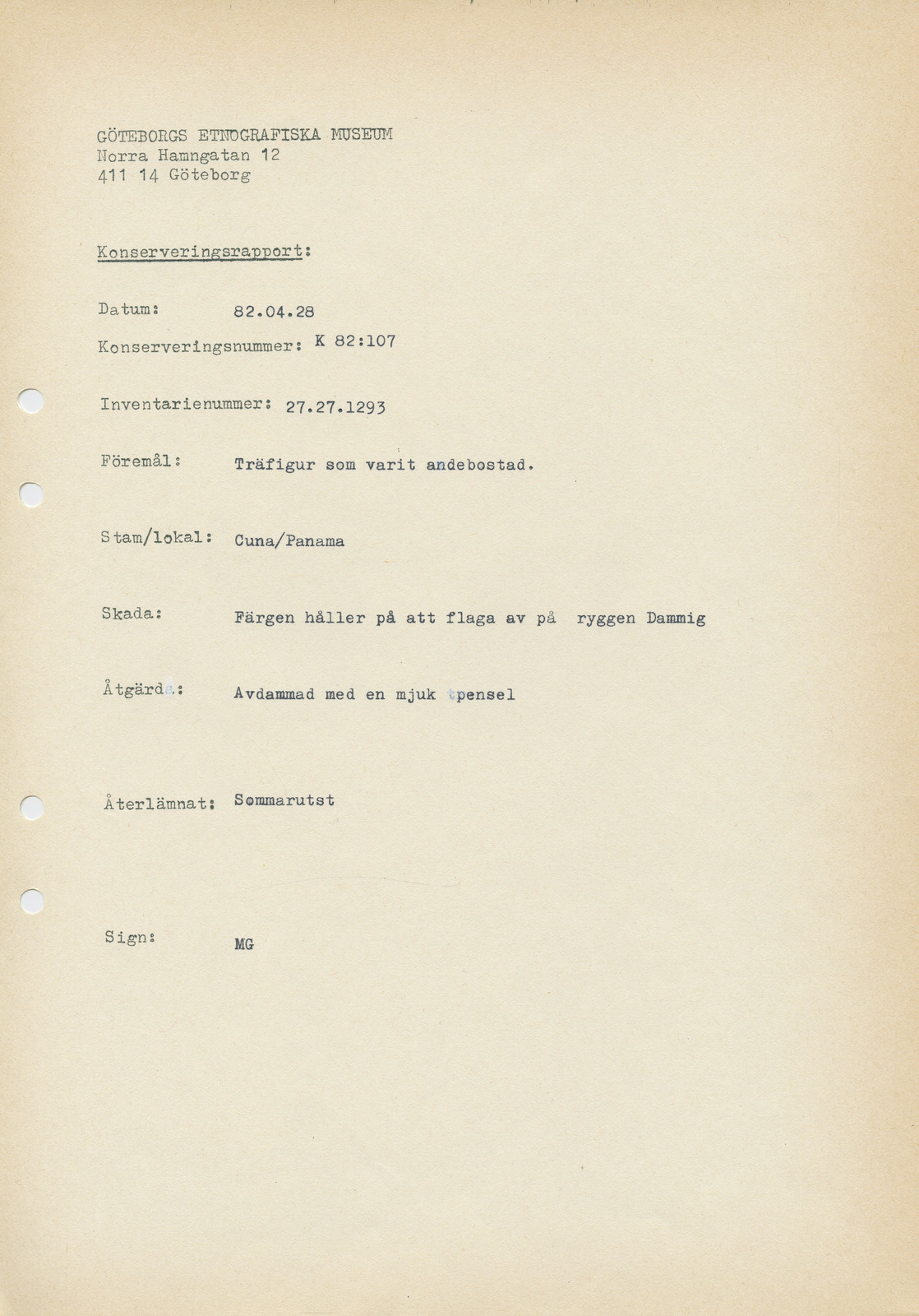 • Konserveringsrapport, Göteborg etnografiska museum (GEM).