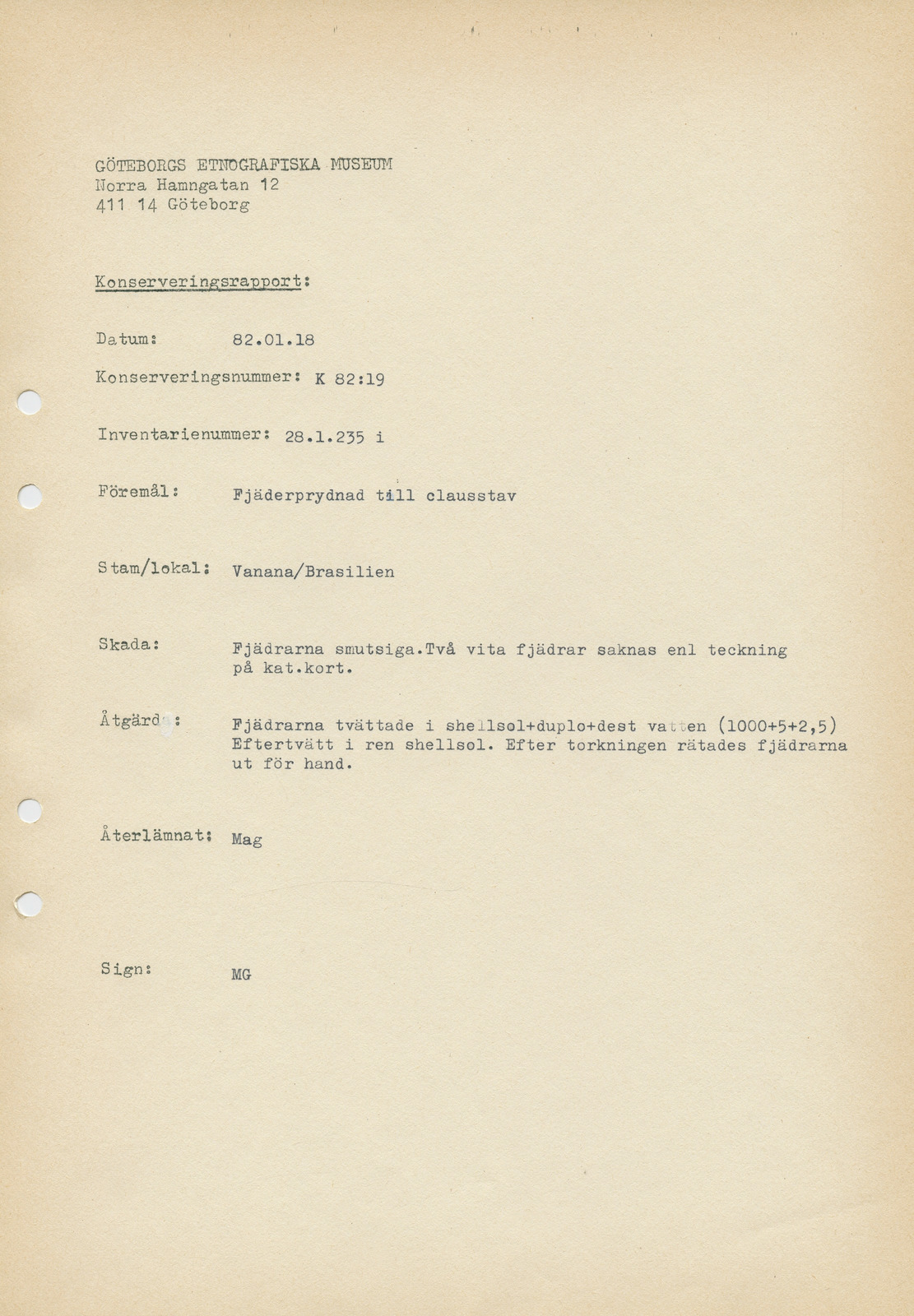 • Konserveringsrapport, Göteborg etnografiska museum (GEM).