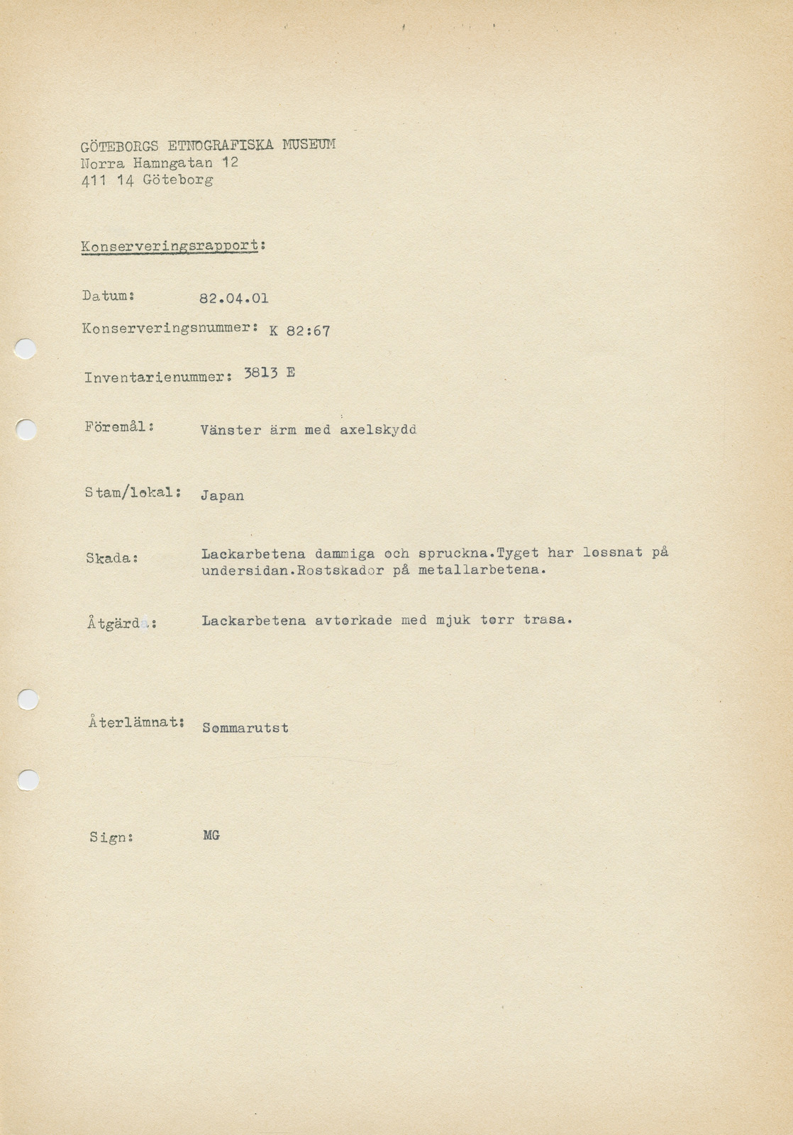 • Konserveringsrapport, Göteborg etnografiska museum (GEM).