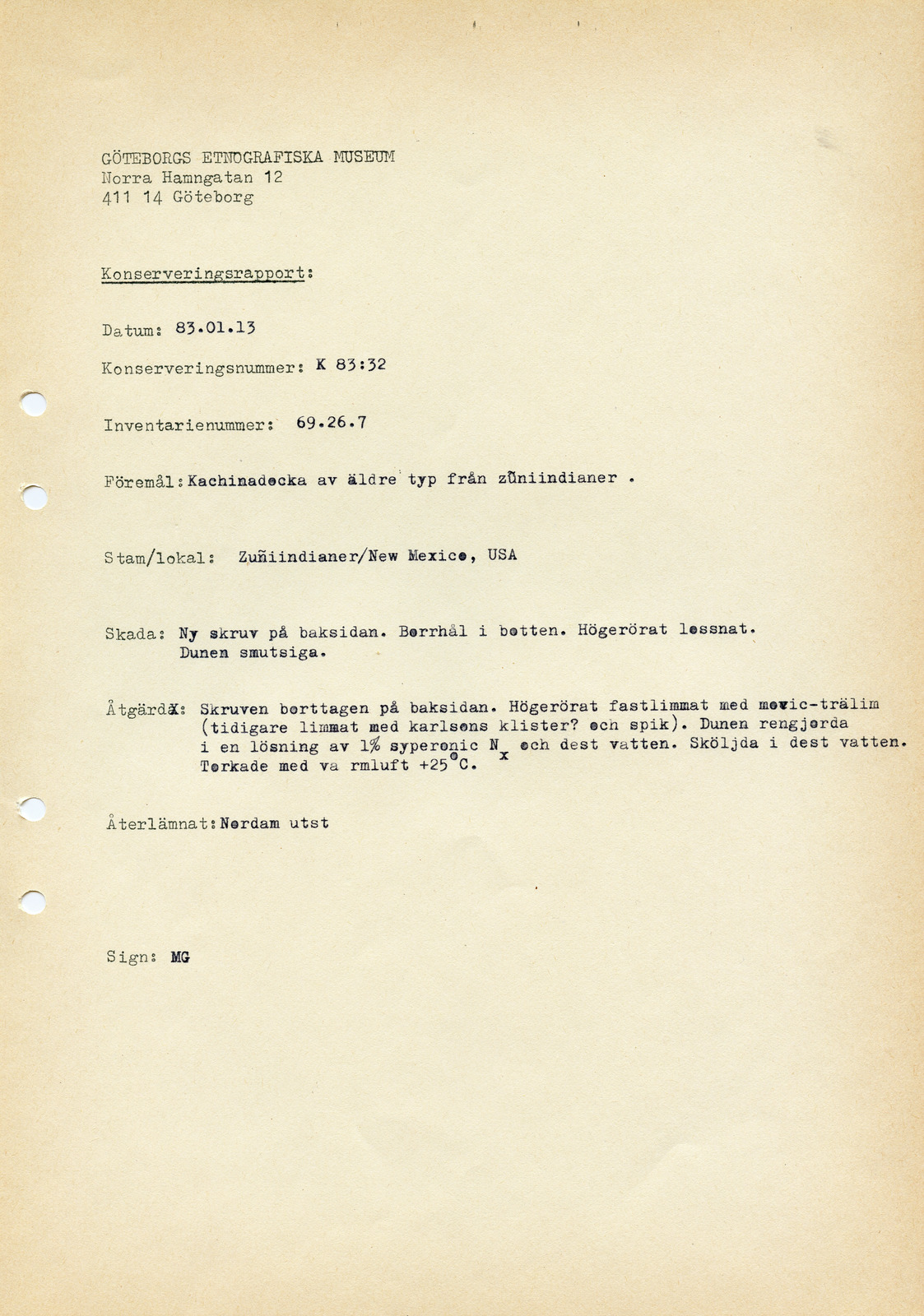 • Konserveringsrapport, Göteborg etnografiska museum (GEM).