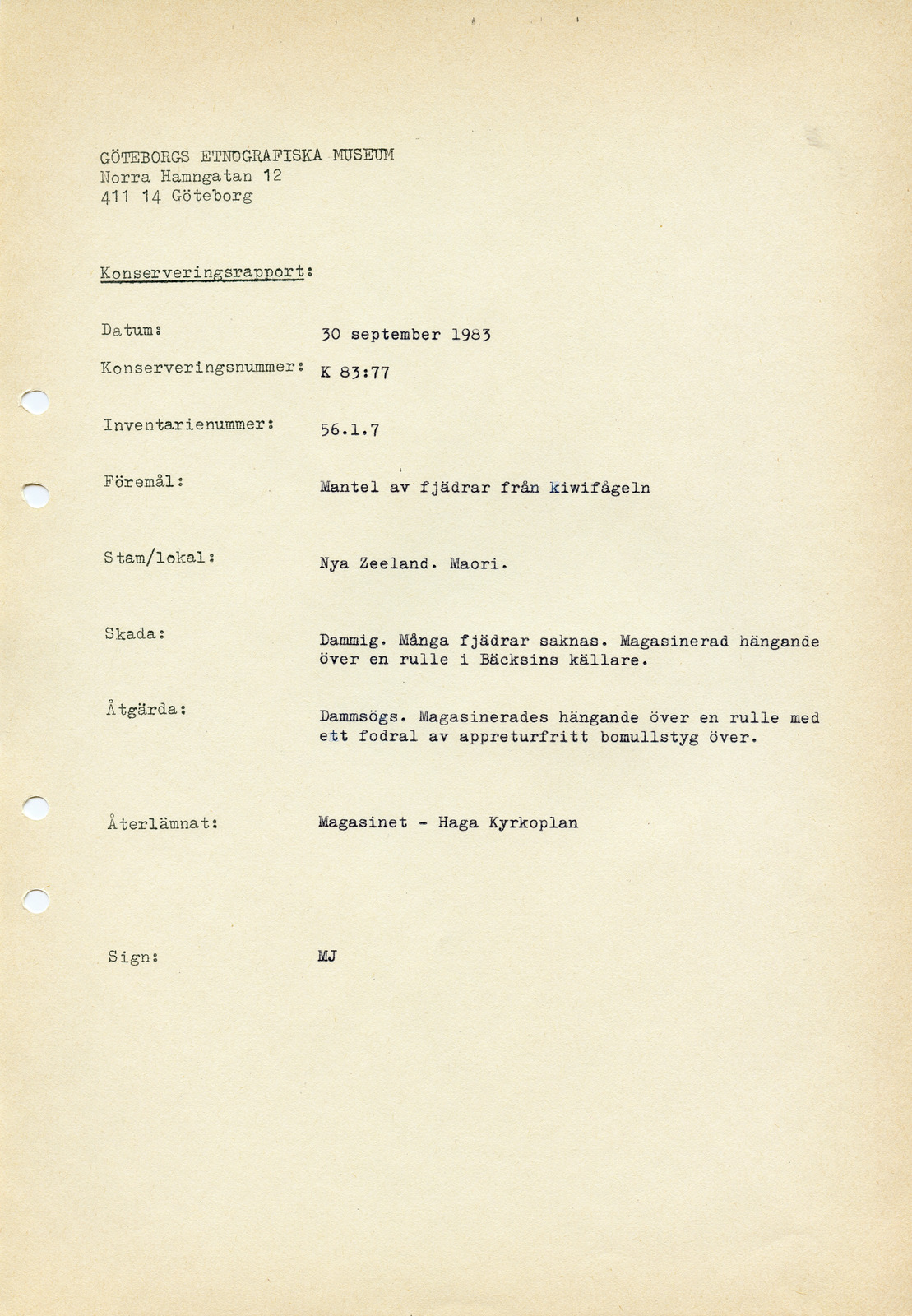 • Konserveringsrapport, Göteborg etnografiska museum (GEM).