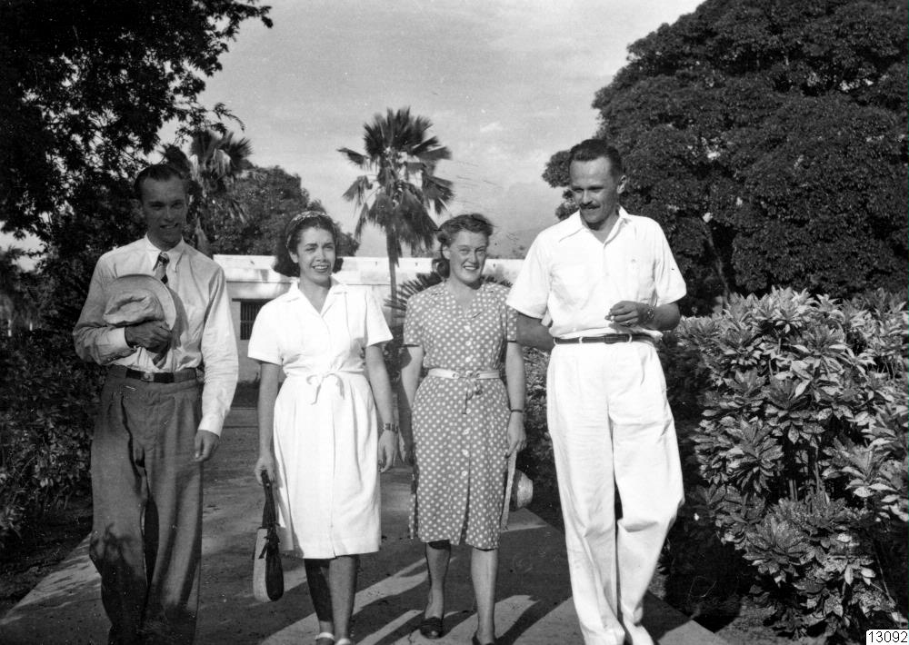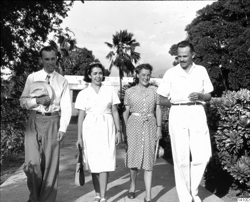 Från vänster Nils M. Holmer, fru Alicia Reichel-Dolmatoff, fru Karin Wassén, Sr. Director Gerardo Reichel-Dolmatoff, den 12 juli 1947.