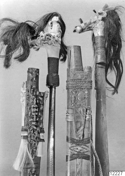 • Svärd med slidor. Etn.Mus.Gbg., saml. gjord av Mjöberg. Kat.nr.39.3.7 och 39.3.8. Fotot av Iwar Andersson i Stockholm och erhållit gm. doc. K.G. Izikowitz till arkivet. Se Primitiv Konst, stockholm 1947, fig.132. (Katalogkort)