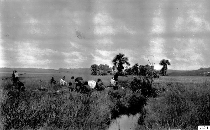 Motiv: Expeditionen tar frukostrast vid Anlopo Creek.Lokal: Gränsen mellan British Guiana och Brasilien.