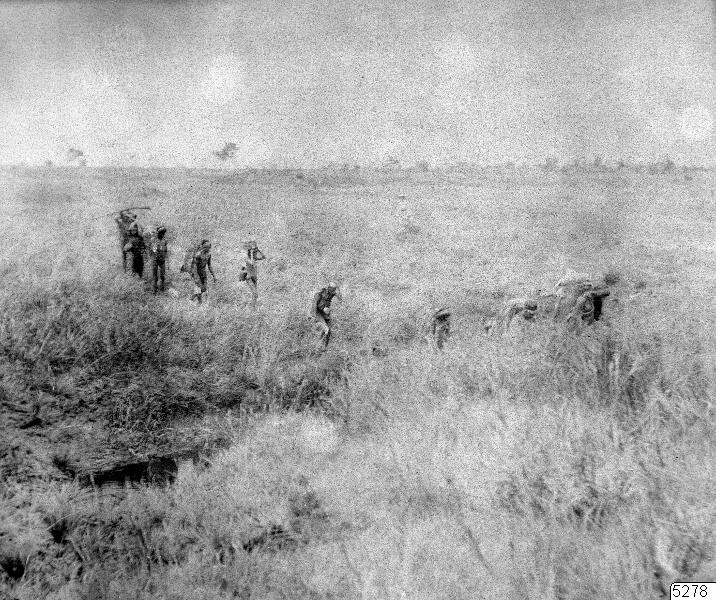 Motiv: Expeditionskaravanen på marsch över savannen.Lokal: Savann nära makusiindianbyn Ainaimong vid R.Wailang, biflod till Ireng River, Brasilien.