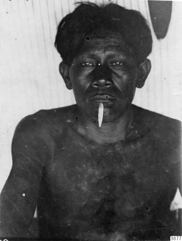Local: R. Orteguasa, so ColombiaUitotoHombre con adorno labial del pueblo de Niña MariaFoto: K. Th. Preuss1914al museo en Göteborg: 1920