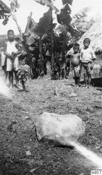 oMotiv: S.k. watoe-nonjoe /watoe=sten, nondjoe=mortel/. 3 olika stenmortlar, 3 fotos. Samma mortel på 2 fotos. Lokal: Toro, söder om Koelawi, Central-Celebes. Foto av: eng. missionären L. Woodward, omkr. 1939. Erh.: av dito genom brev till Dr. Kaudern, 14.10.1939. (katalogkort)