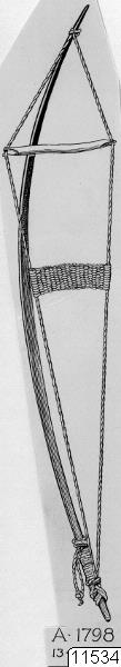 kulbåge, teckning, föremålsbild, föremål, båge, flätning, teckng, vapen, repkulbåge, Teckning, drawing