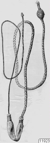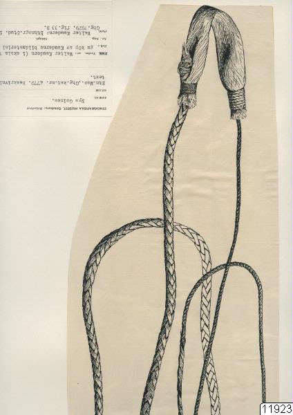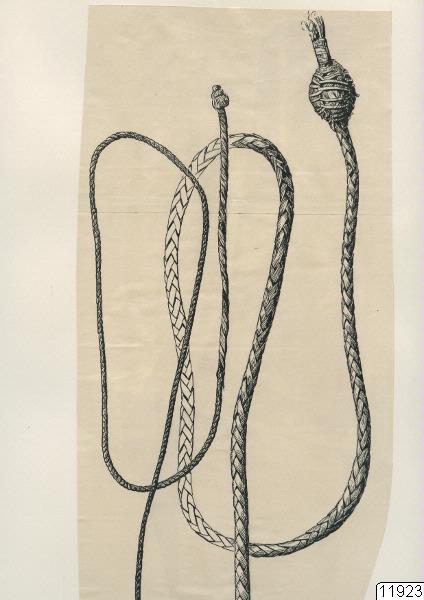 • Motiv: Slunga, Etn. mus., Gbg. Kat, nr. 4772. Beskrivning i Kauderns bildtext. Lokal: Nya Guinea. Teckn. Walter Kaudern ( I skala 1:1) före 1929. Erh: Gm köp av Kauderns bildmatrial 1947. Publ: Walter Kaudern: Ethnogr.stud. in Celebes, IV, Gbg. 1929 fig 33 B. (Katalogkort).