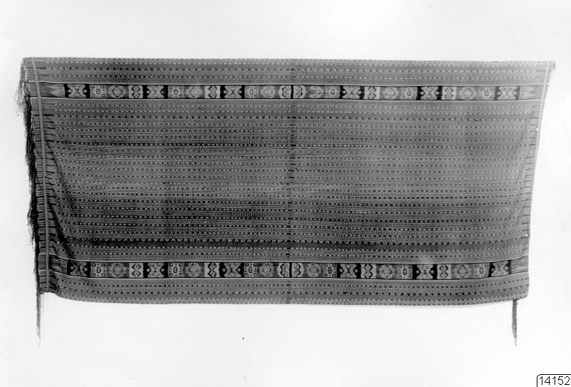• Motiv: Slimut. Vävnad med varpikatmönstring. Samlad vid Wonreli på Kisar. Bredd: 105 cm. Längd: 220 cm. GEM 52.26.3.