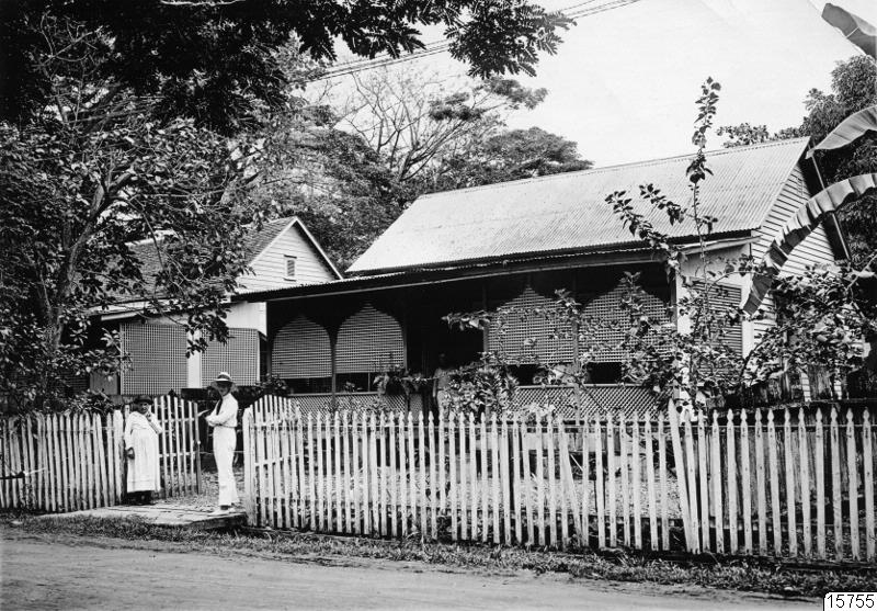 • Bostadshus, tydligen i Papeete. Foto i löjtnant Yngve Olssons kvarlåtenskap. Denne hade vistats på Tahiti. Foto: Ingen uppgift om fotograf eller datum. Erhållen: Gåva till museet genom systern Ingegärd Olsson 1966-03-22. (katalogkort).