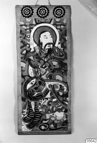 • Rituell målning på papper.102 x 43 cm. Yao-taoistisk. Målad i Mung Sing, norra Laos omkring 1880 av kinesisk specialist (naturaliserad yao). GEM 67.7.14. Thailand: Chiengrai-provinsen: Maechan. Foto: J.O. Brändström 1967. Erh. Ingen Uppgift. (katalogkort).