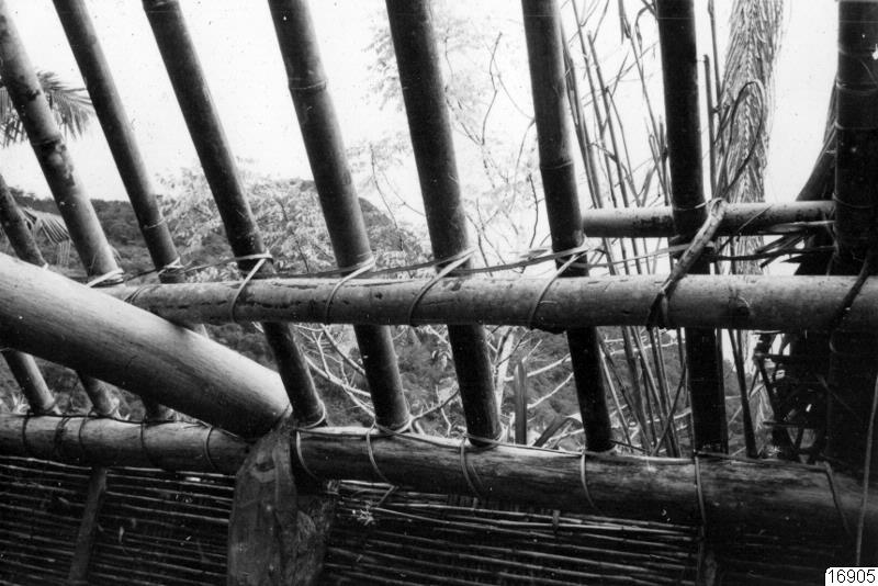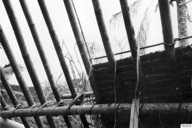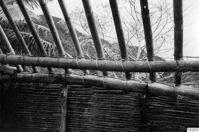 • Motiv: Jovesas nybygge. Taket under täckning. Bilder från insidan. 2 augusti 1963. Fiji-öarna: Viti Levu: Rewasau. Foto: K.E. Larsson. (katalogkort).