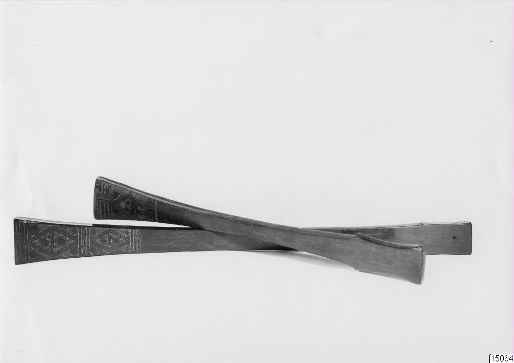 • GEM (Göteborgs Etnografiska Museum) 1925.10.0001 (överst) och 1930.22.0005. Längd: 79 cm och 63 cm.