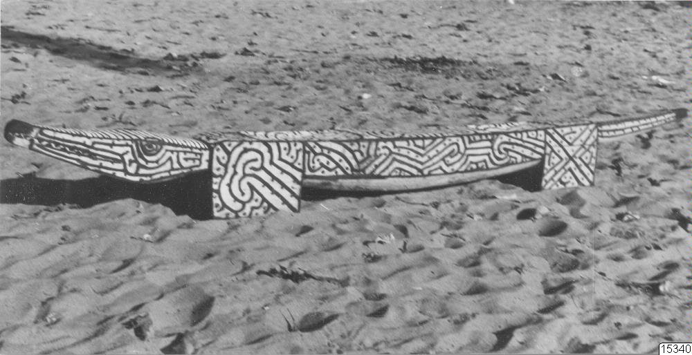 Motiv: Pall i form av krokodil, 240 cm lång. Jfr brev av 1963-10-16 från Borys Malkin. Stam: Galibi-indianer. Lokal: Surinam, Amerika. Erh.: Gåva av B. Malkin. Till Arkivet.