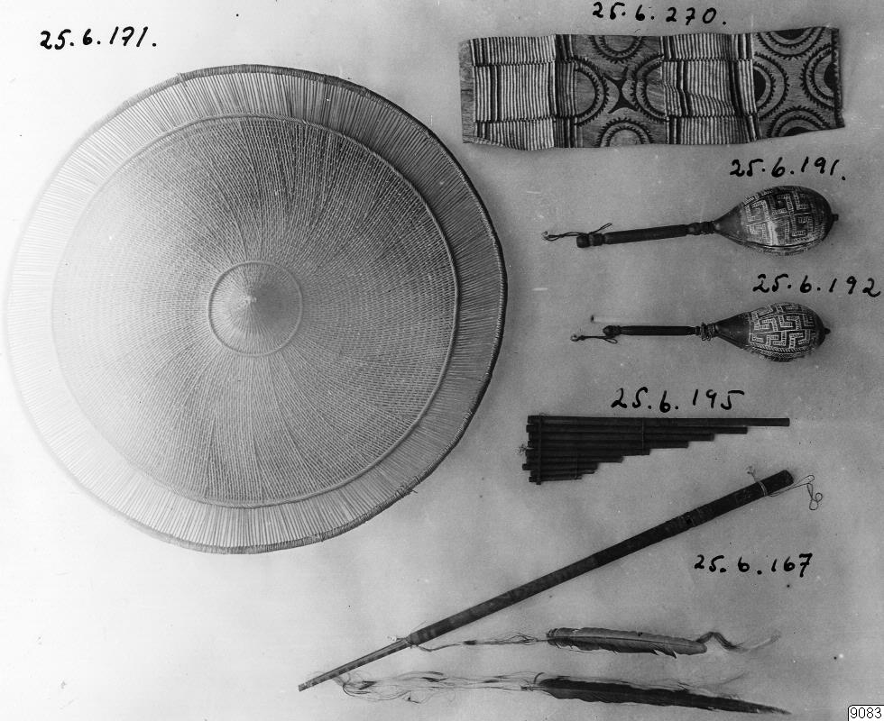 • Motiv: Föremål för festdanser o.dyl. Ur saml. 25.6. Nr. 171 från Tariana, 167 från Piro Tapuya, 270 från Desana och 191,192 och 195 från Tukano.