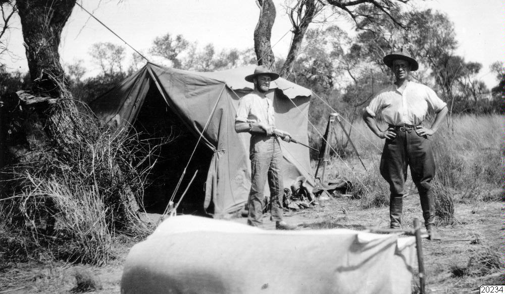 • Expedition Haeger till El Gran Chaco, år 1920. "Expeditionen på march". Argentina. Två män framför ett tält.