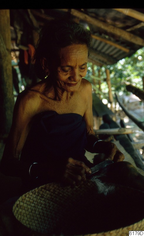 Rato Tura som är 78 år sträcker bomullsfibrerna och förbereder då bomullen för spinning med hjälp av en kniv som kallas kito. Kniven används även för att hacka tobak. kampung Liti Bawa, desa Wee libo, ketcamatan Walakaka, västra Sumba, Indonesien