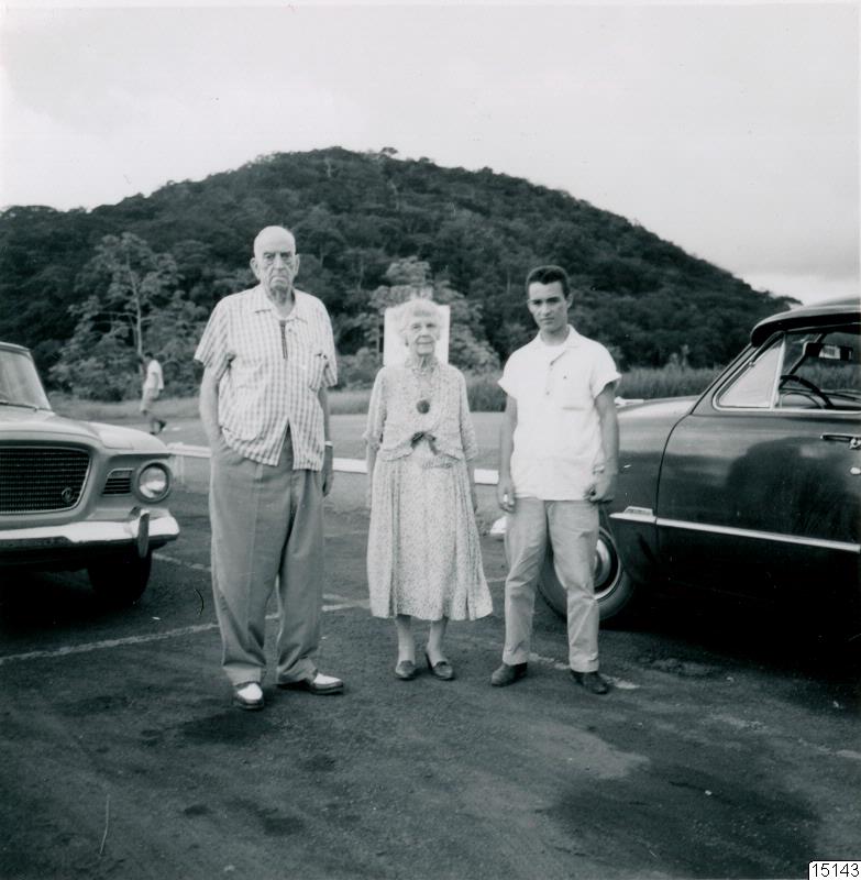 • Ca 80 år gamle panamakännaren och amatörarkeologen och samlaren Mr Karl P. Curtis och hans 85-åriga hustru samt en gäst, Henry Grotacos Jr från Soná, Panamá, vid besök av Wassén i Gamboa i samlingsärenden. Ett av tre fotos, tagna vid klubbhuset i Gamboa.