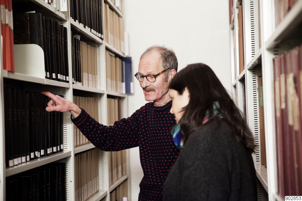 • Jan Amnehäll, Farzaneh Bagherzadeh och Linda Lundberg visar Annica Ewing Världskulturmuseets magasin på Ebbe