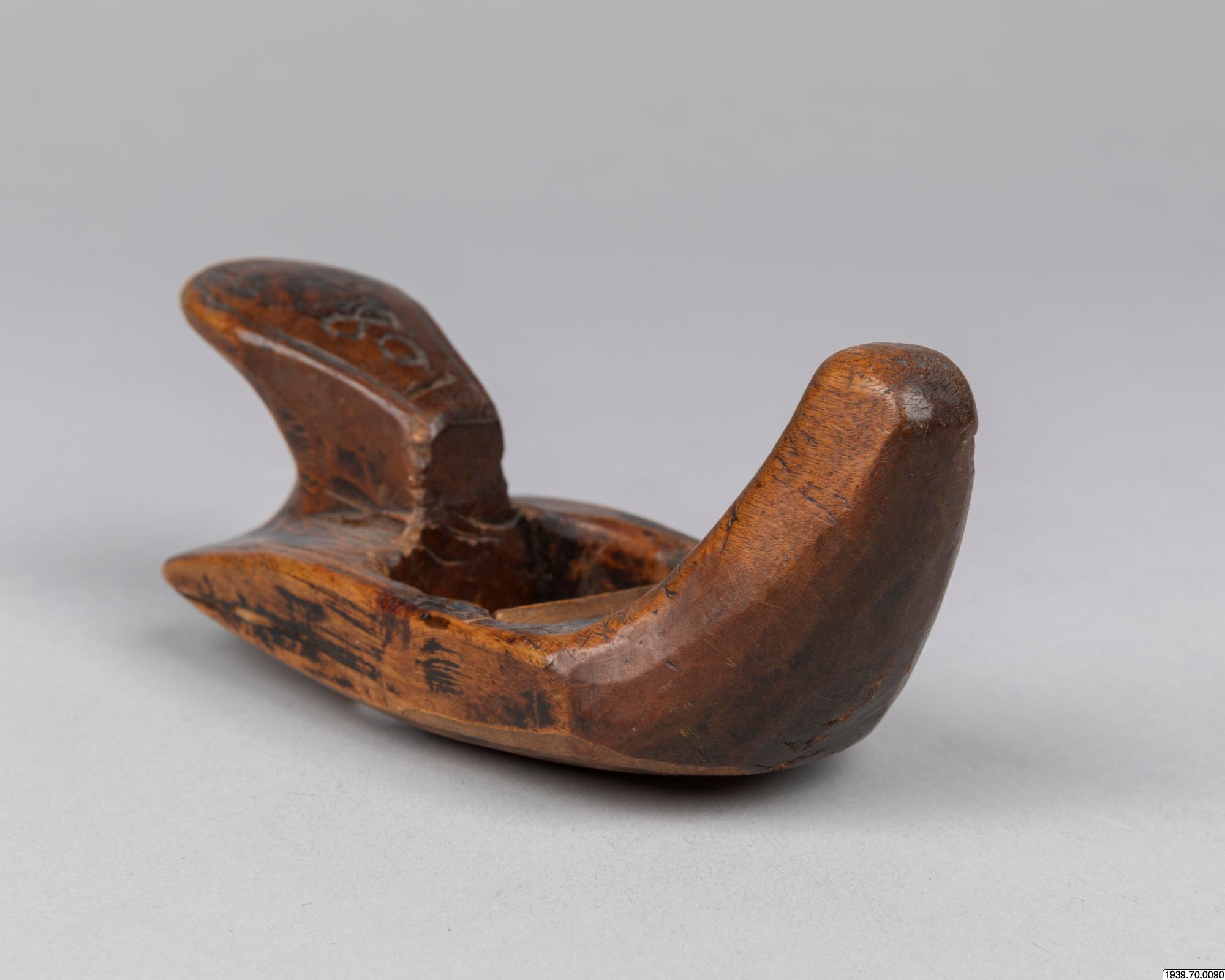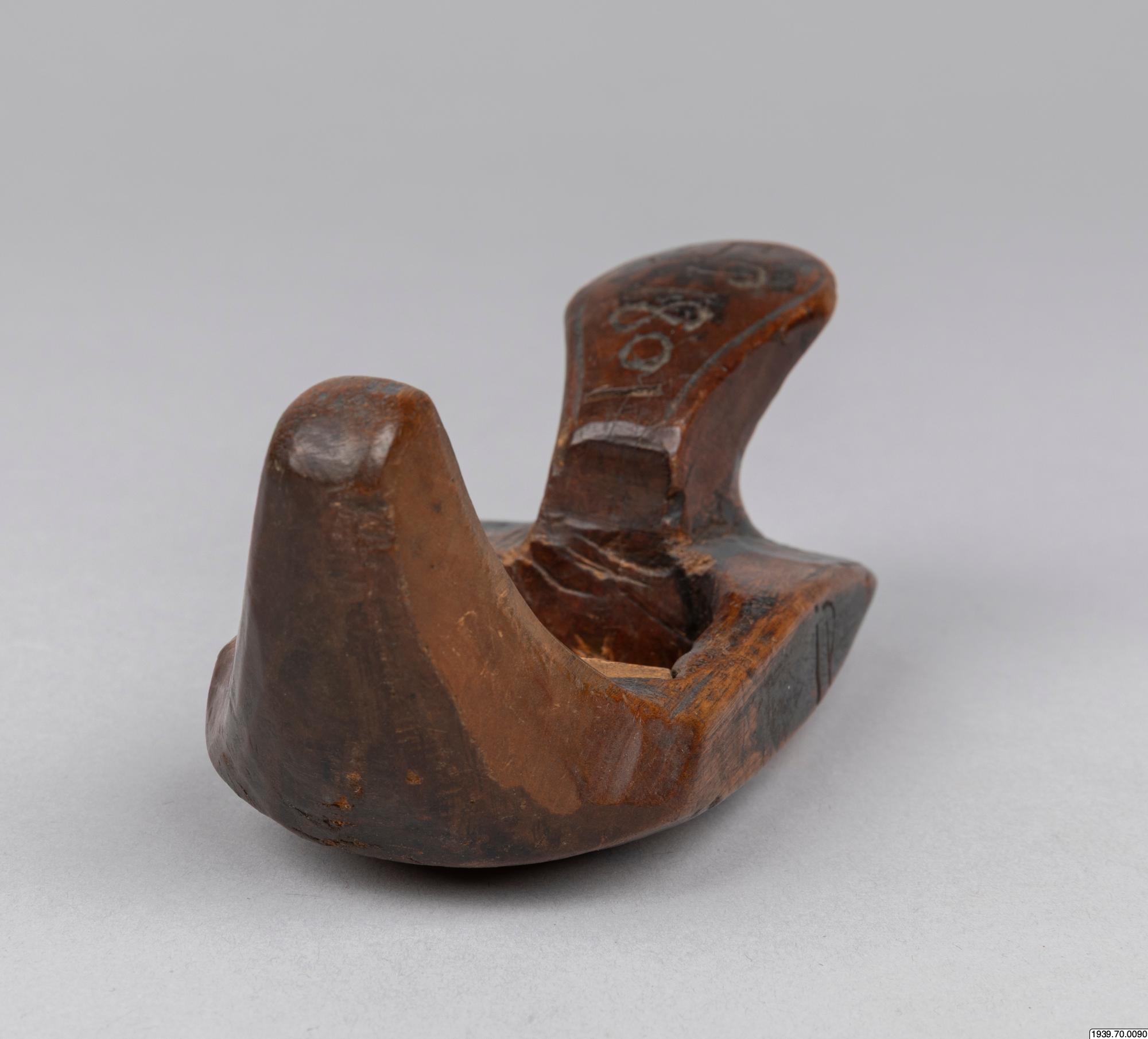 Om träslöjden: Samerna använde till sina vardagssysslor en mängd träredskap av olika slag, som de alla snickrade själva. Det var männen som stod för alla snickeriarbeten. Verktygen var enkla men med dem tillverkade de allt från byggnad-er, ackjor, skidor till hushållsredskap, verktyg och vackra prydnadsföremål. Relaterade sökningar: Register: [alla] FOLNAM: samer OBJTXT [innehåller]: redskap och utrustning träslöjd Borr: 1973.04.0002 Hyvel: 1973.04.0001, 1973.04.0004. Holkjärn: 1973.04.0003, 1939.70.0220, 1939.70.0042 (På samiska katsok, på finska kovelo. Ett slöjdredskap för att karva ut runda former i trä, masur eller ben.) Verktyg: 1941.08.0022, 1941.08.0025. Alnmått: 1941.08.0049. Vril: 1940.13.0001 (svamputväxt på en björk. Massur, som det görs kosor m.m. av.) (av Madeleine Stirnimann, socialantropolog VKM Göteborg, 2010)