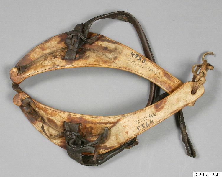 • Renloka av trä, med läderremmar. Köpt av förf. lappmannen Johan Thuri, Torne träsk. (4923).