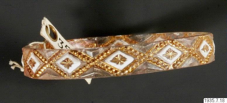 • Armband av vitt, genomskinligt glas, dekoren i guld och mjölkvitt glas.