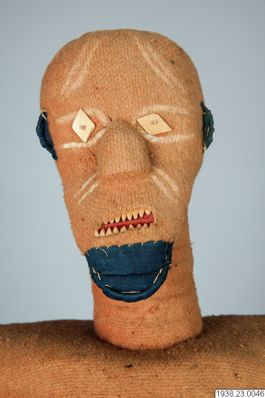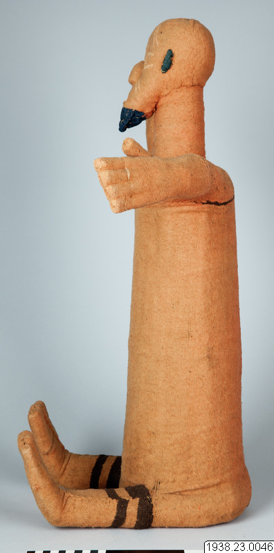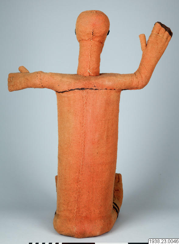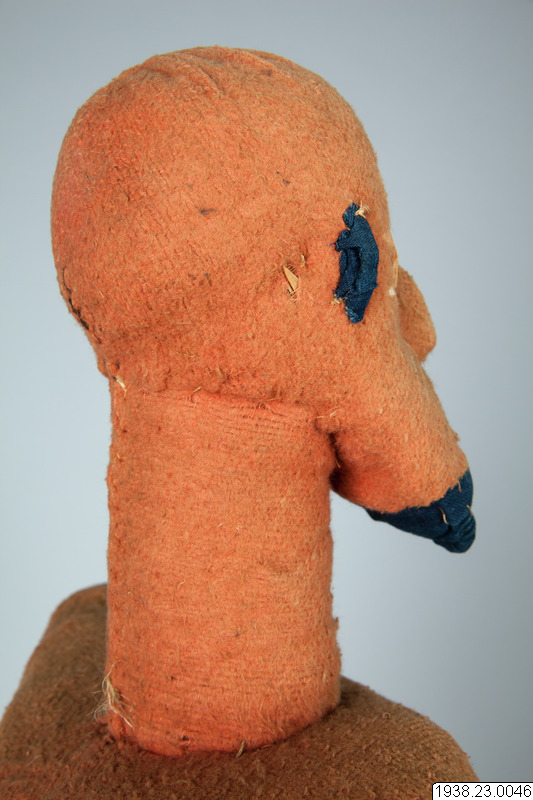 Muzidi, "förfädersidol". Av uppstoppad filt. "Ej invigd". Från Babembe i Franska Kongo, Västafrika. Insamlad av missionären Efraim Andersson, Lund, och i augusti 1938 av honom överlämnad till museet. Längd: 56 cm, Bredd: 35 cm, Höjd: 72 cm. Ursprung: Kolo area, Kongo-Brazzaville Etnisk grupp: Babembe Muzidi, "ancestor-idol". Made of stuffed felt. "Not initiated". From Babembe in French Congo, West Africa. Collected by the missionary Efraim Andersson, Lund, and in August 1938 he handed it over to the museum. Length: 56 cm, Width: 35 cm, Height: 72 cm. Origin: Kolo area, Congo-Brazzaville Ethnic group: Babembe (utställningstext Horisonter - röster från ett globalt Afrika)