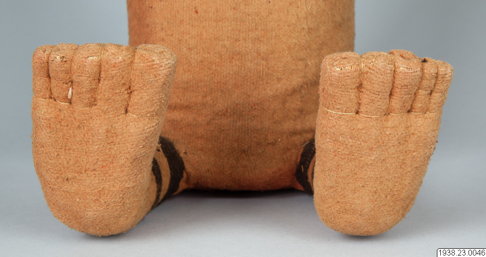 Muzidi, "förfädersidol". Av uppstoppad filt. "Ej invigd". Från Babembe i Franska Kongo, Västafrika. Insamlad av missionären Efraim Andersson, Lund, och i augusti 1938 av honom överlämnad till museet....