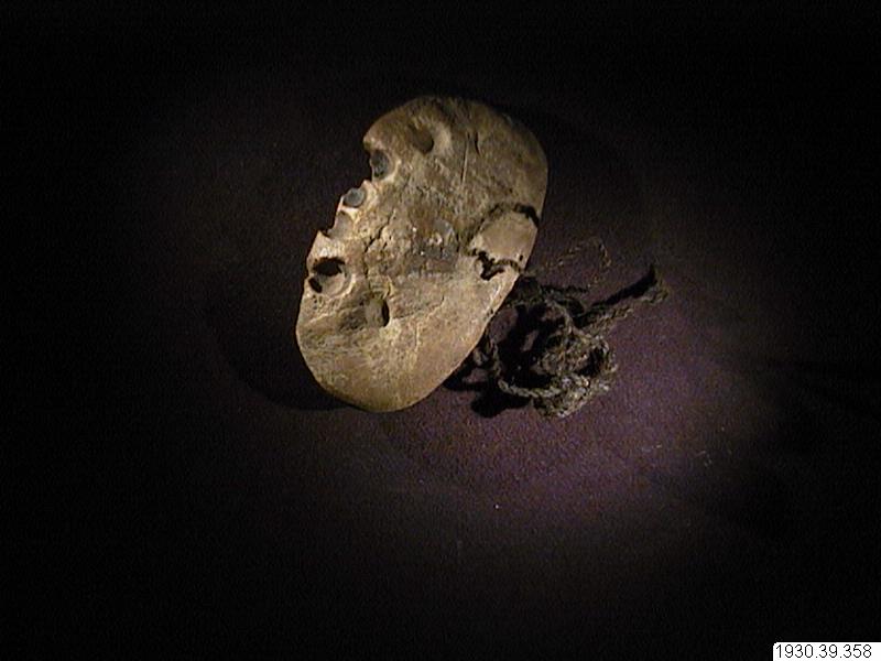 "The tinder box has an oval form, with seven holes. Four of the holes are on one side, two are in the middle, and the seven hole was used to thread a string through it. That particular hole thus perforated the object. The four holes on one side show traces of fire. They are actually completely burnt and could not be used for making fire anymore. The other two show no traces of fire. The string pulled through the seven hole was made of twined human hair." (adriana muñoz)
