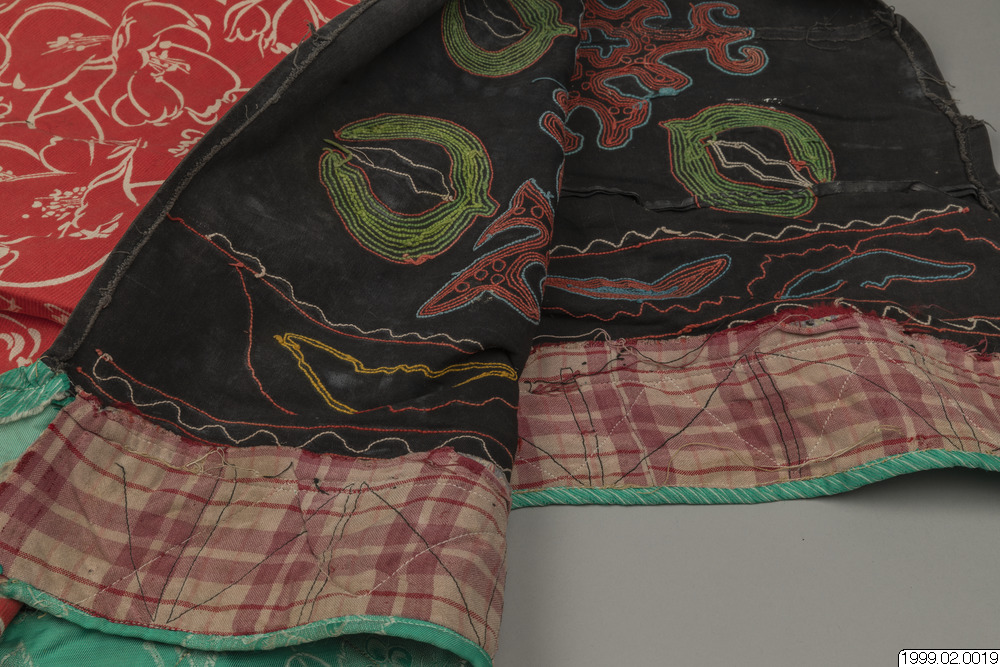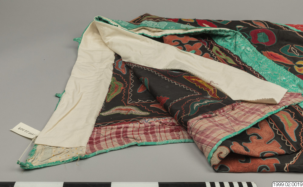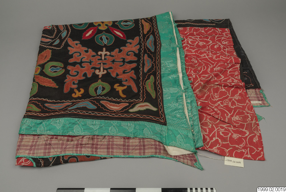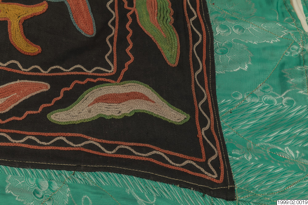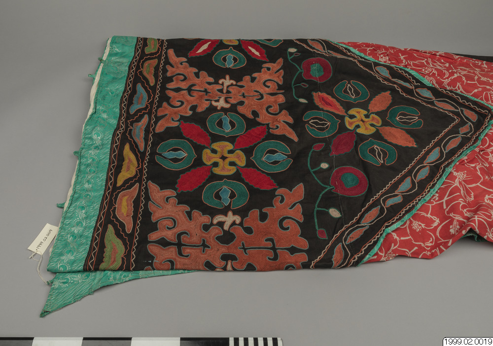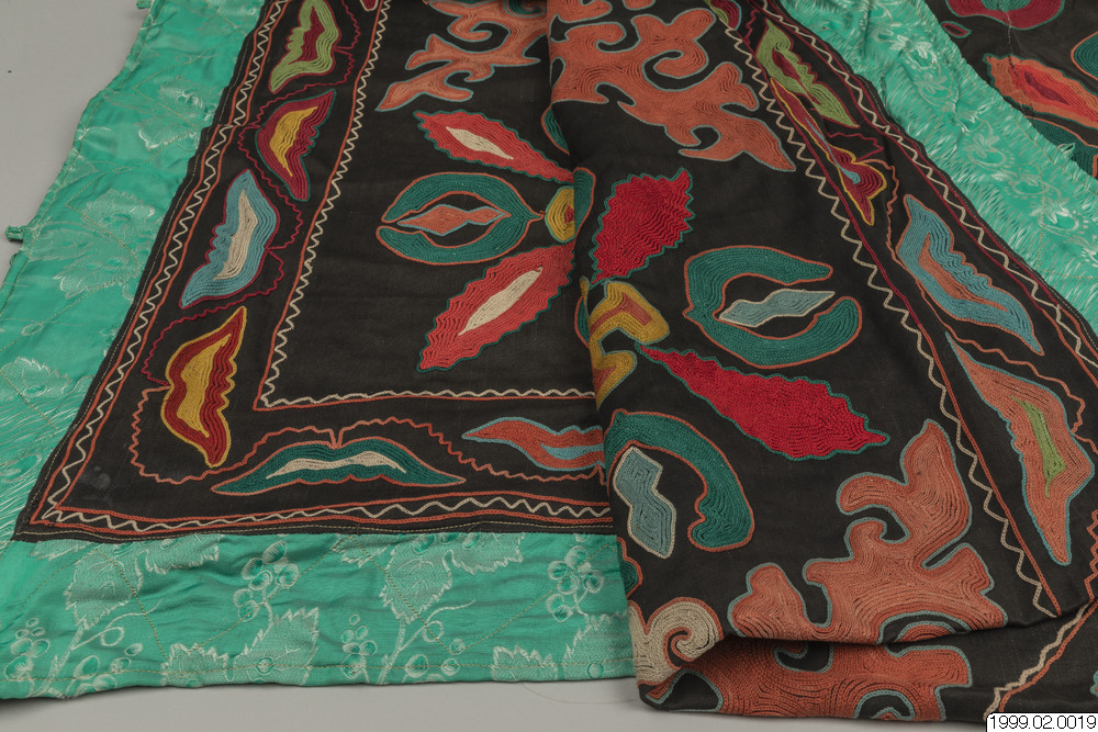 Textilen, suzanne, består av 2 delar, ett grund tyg, vanligen av ikat vävt siden, i detta fallet är det ett mönstrat ....tyg.