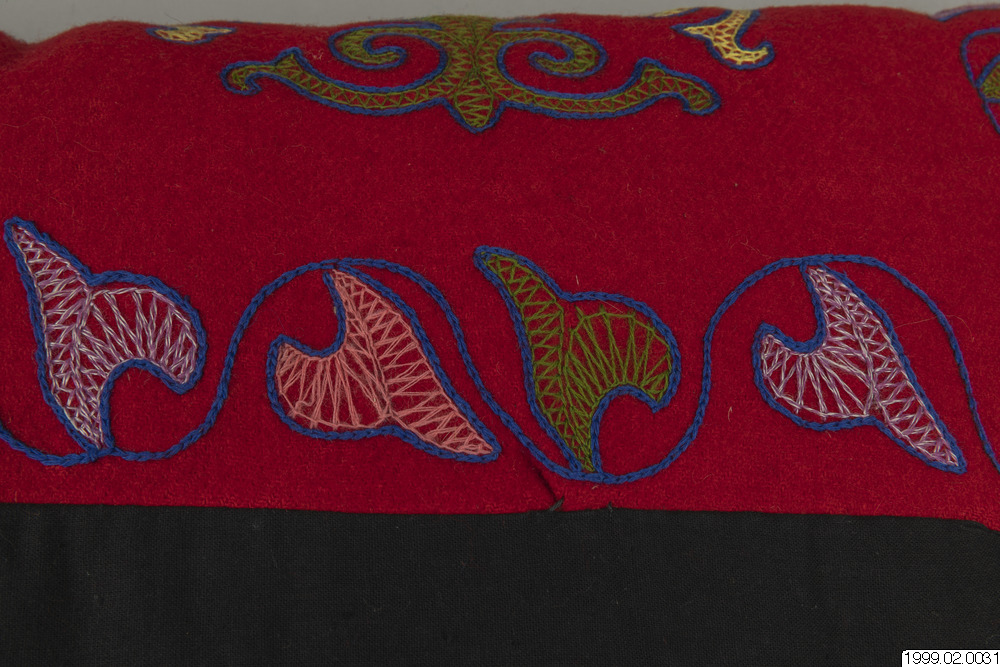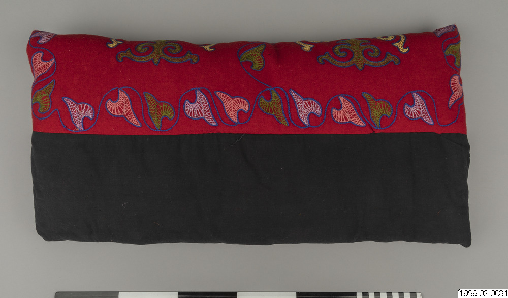 Kudden har ett parti mitt över överdelen som är broderad med .........