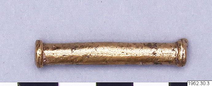 3,9 cm rörformig pärla av guld. Köpt tillsammans med nris 1-2 i denna samling. Se uppgift till nr 1.